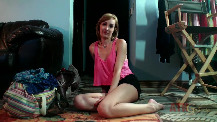 Busty 23yo beauty shows her wide-opened shaved pussy