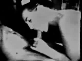 Natural big-tit brunette gives a deep blowjob in Retro movie