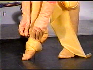 Domina in purple latex is making a new black latex doll