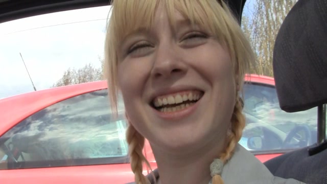 Smiling cutie with pretty face is flashing big round boobs