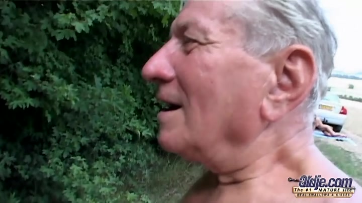 Big-boobed goddess bangs with horny Oldje in green forest