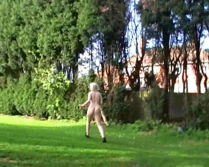 Nude beauty Sarah Peachez is lying on the grass and masturbating