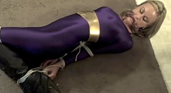 Sexiest slender minx in purple spandex tights demonstrates her hot body