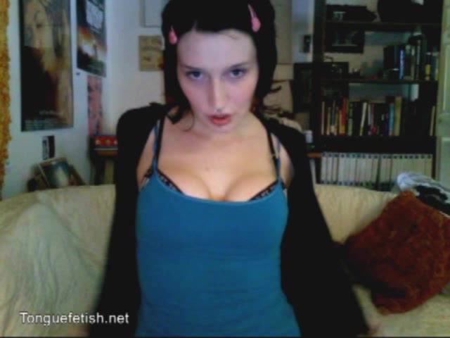Brunette with bright blue eyes likes tongue fetish and solo webcam chats
