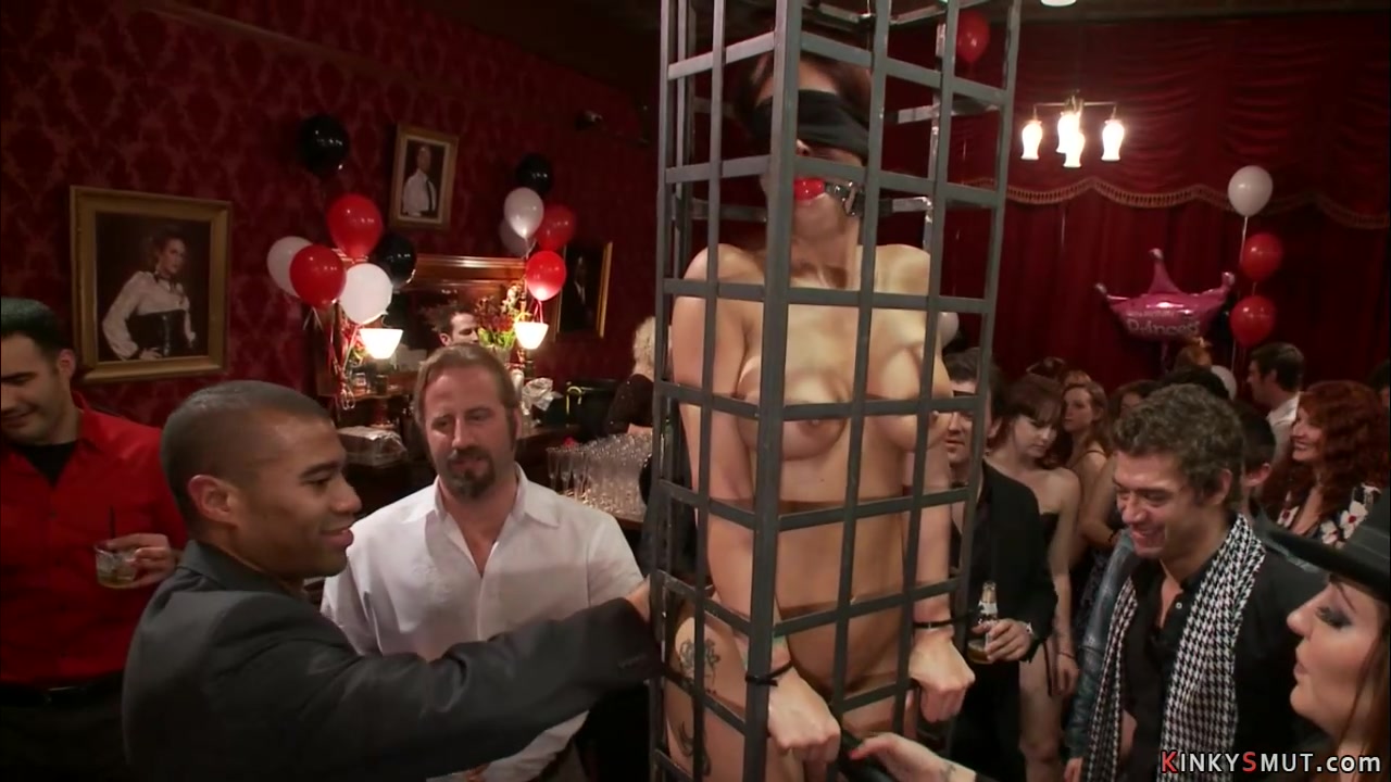 Sweaty bound blonde cattle prodded