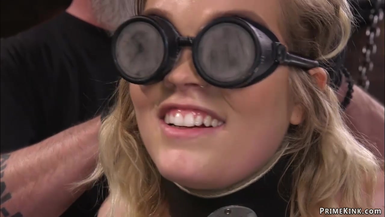 Chained blindfolded blonde ride Sybian