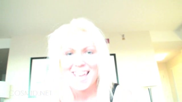Passionate and busty Cosmid blonde goes topless like a stripper