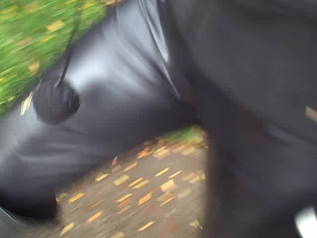 Cute spandex cutie with crazy black mask spotted on the street