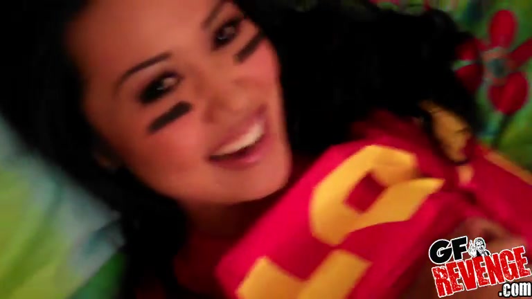 Dirty cheerleader Kali Colada stimulates her accurate pussy
