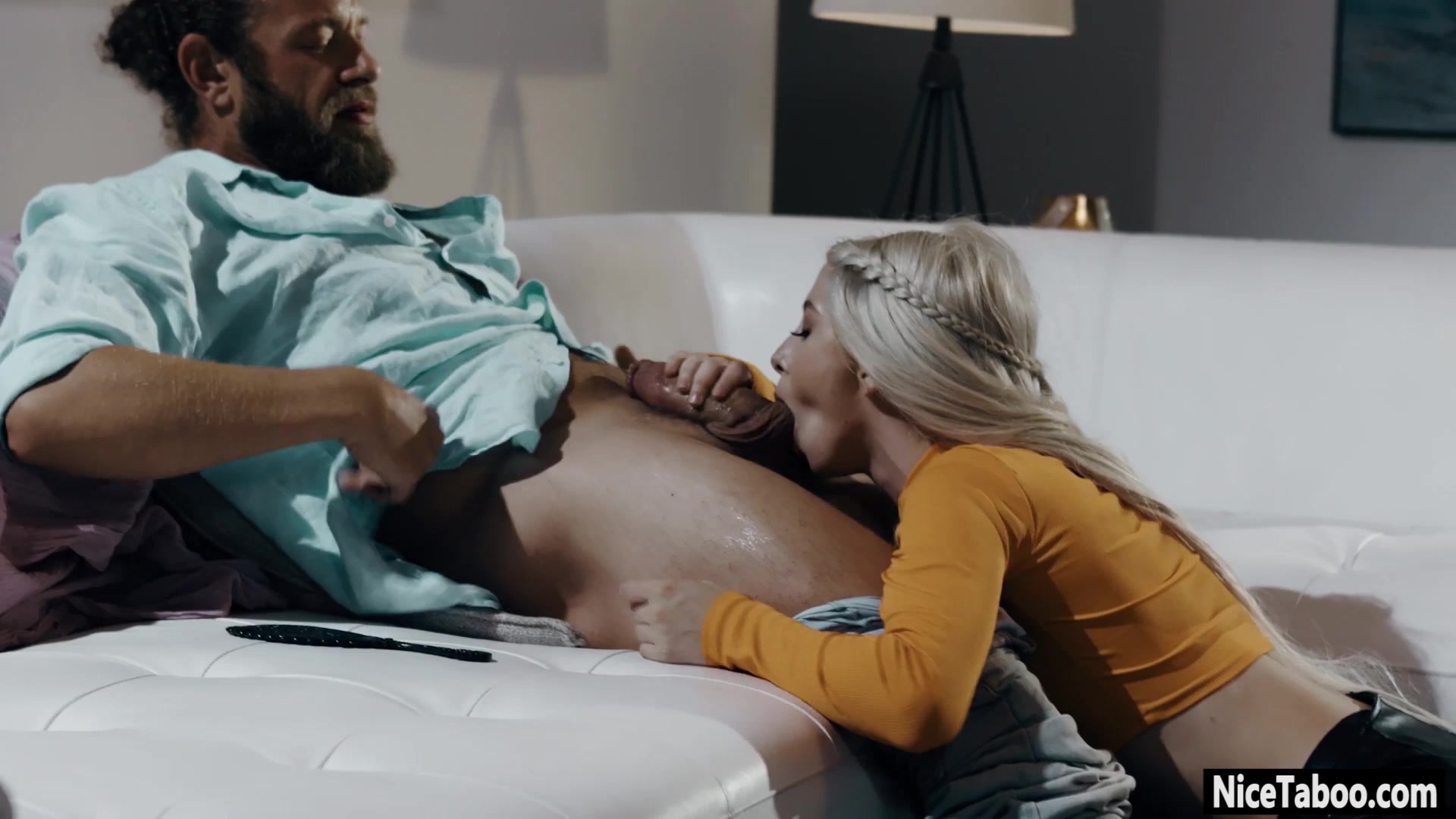 Father fucks his blonde daughter in front of a stranger