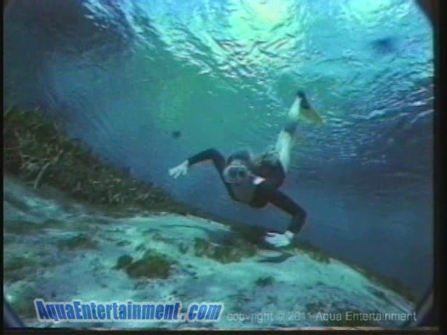 Underwater solo featuring a long-legged diver with cute round tits