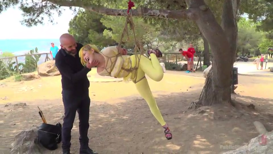Experienced dominator Nerea Falco bonded Frida Sante on a tree