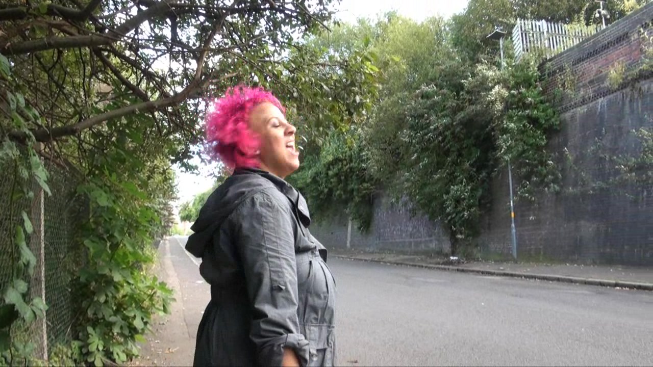 Fat British lady in black stockings strokes her muff