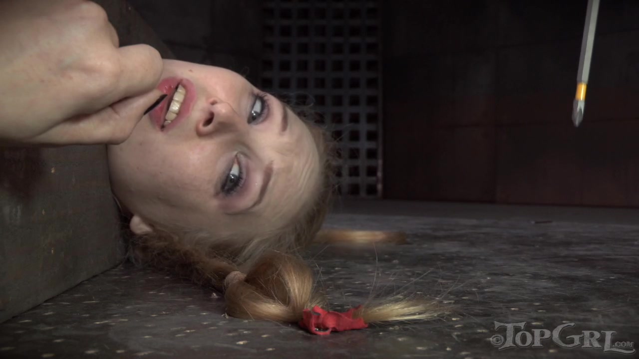 Filthy Top Grl BDSM game on cold floor with a submissive blondie