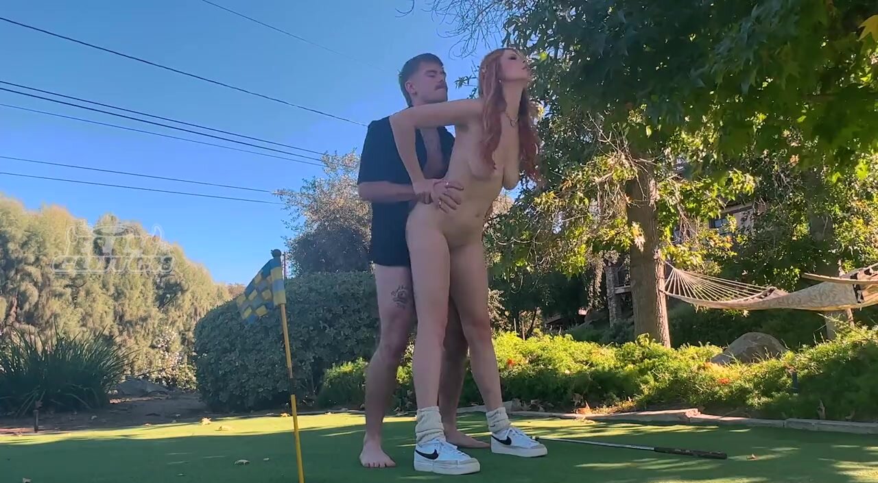 Golf lassie turns into sneaky outdoor fuck with attractive redhead