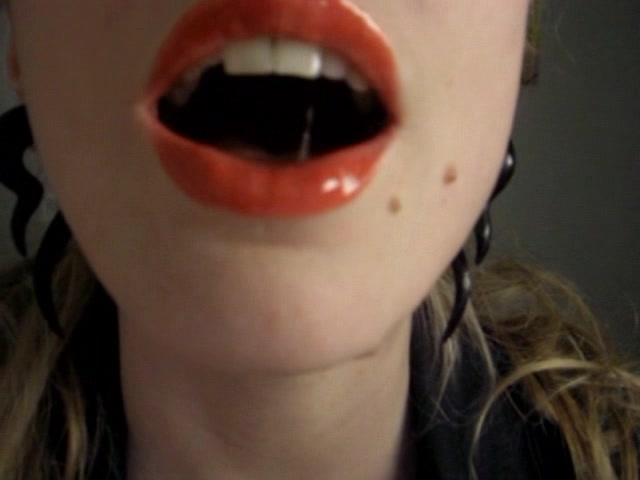 Green-eyed chick with bright red lips poses in doggy style