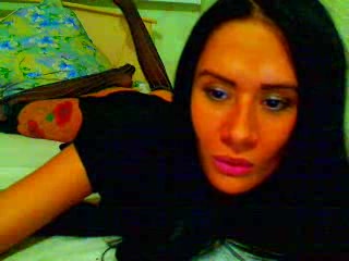 The sexiest black-haired girlfriend is blowing a long striped dildo