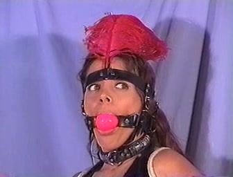 Impressive redhead is getting a huge gag in her mouth