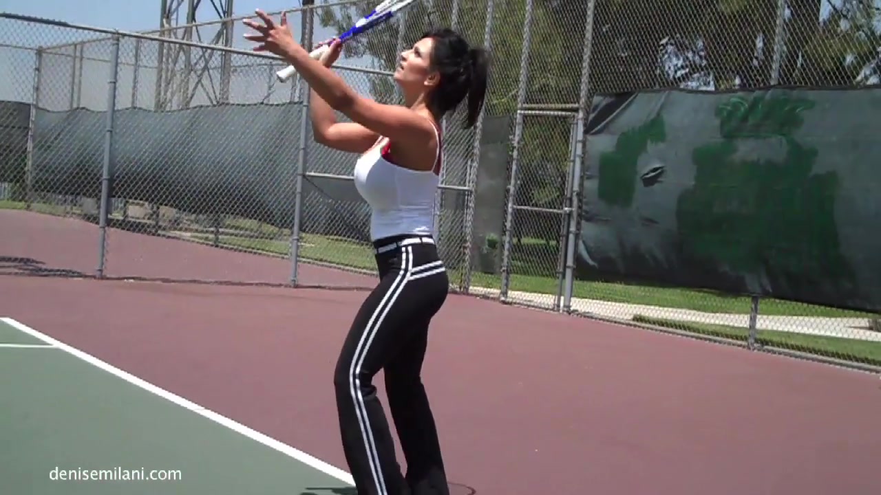 Intensive tennis game with a big-breasted Denise Milani