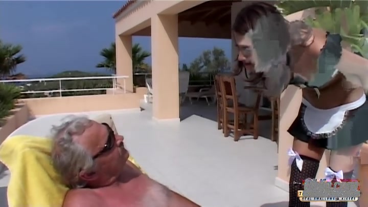 Playful young waitress in black panties is seducing a rich Oldje