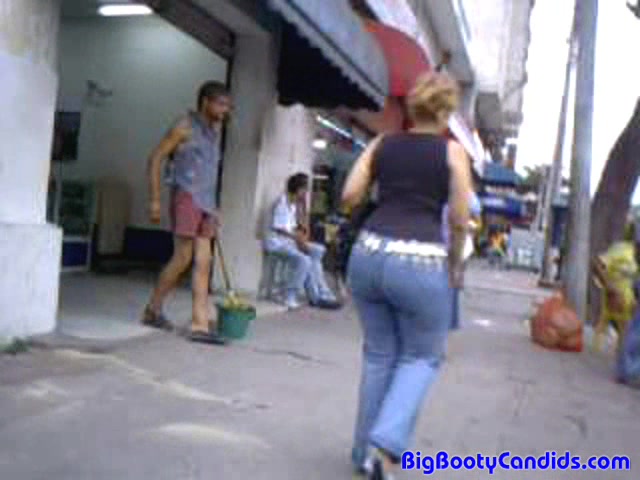 Filming a beautiful big booty babe in tight blue jeans