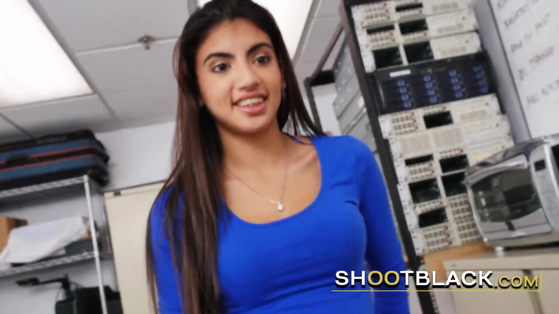 Long haired beauty sucks on directors big black cock before being banged hard