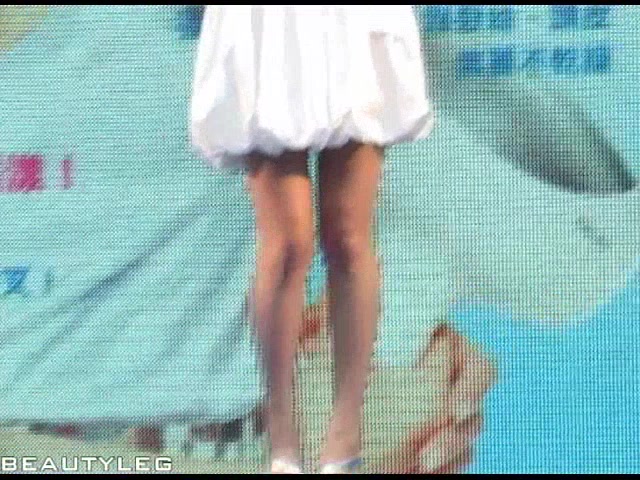 Lusty Asian girl presents on her great legs during the catwalk