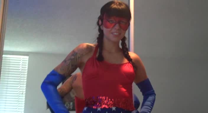 Masked spandex babe is having an awesome slender body
