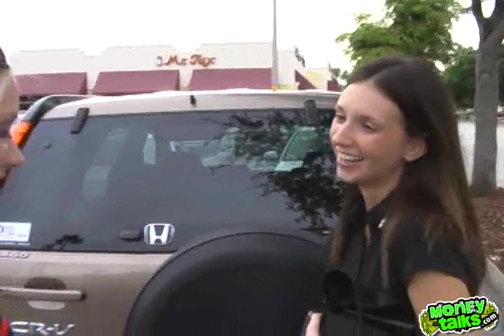 Money Talks Katie perfect chick Jordin licks a tight snatch on the backseat
