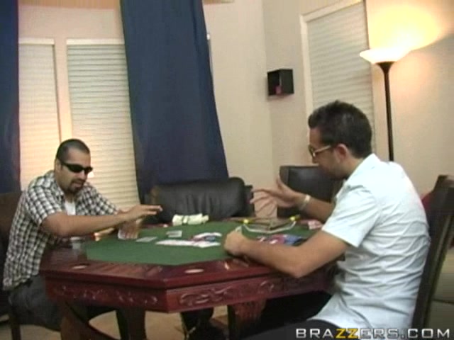 Poker game turns into undressing of a busty Mellie D