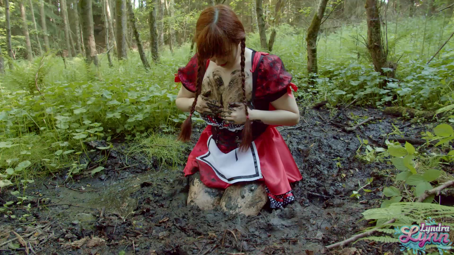 Red Riding Hood masturbates in forest mud