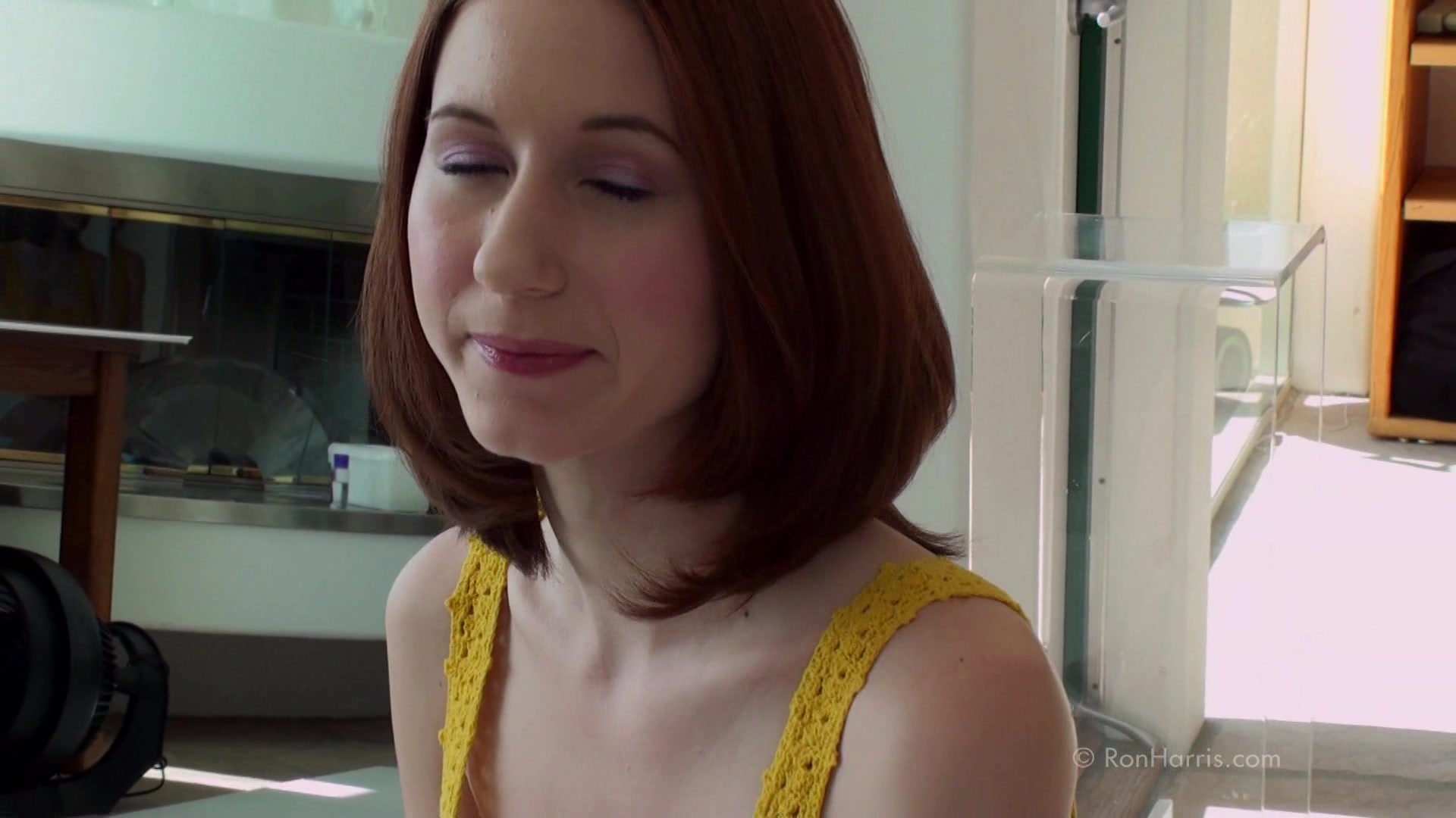 Ron Harris redhead slowly flashed her naked legs and round ass