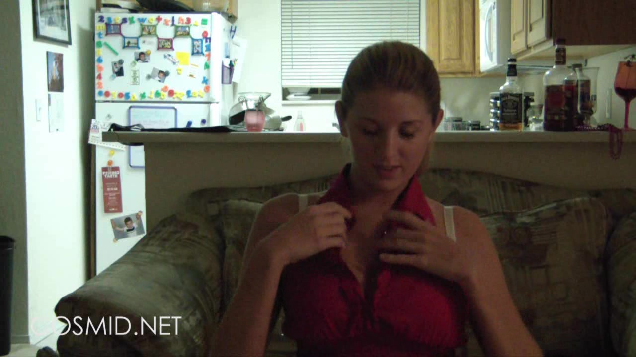 Smiling Cosmid milf with huge natural boobs poses in solo action