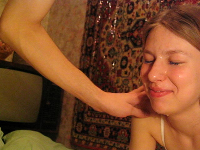 Sexy Russian girl received a really messy facial load