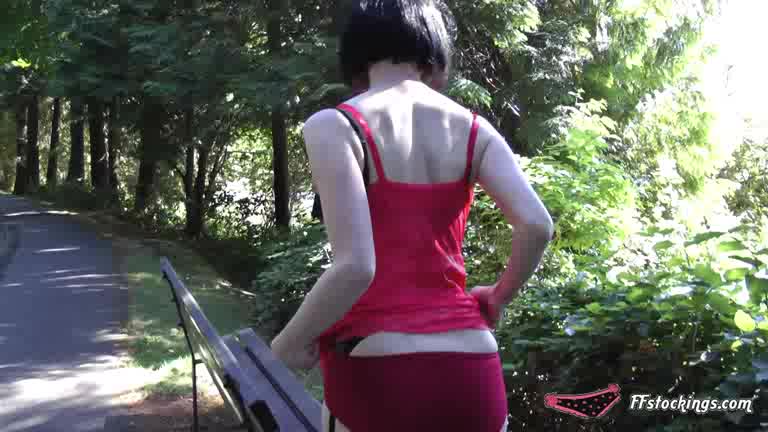 Shameless mademoiselle in Stockings stretches her ass in the forest