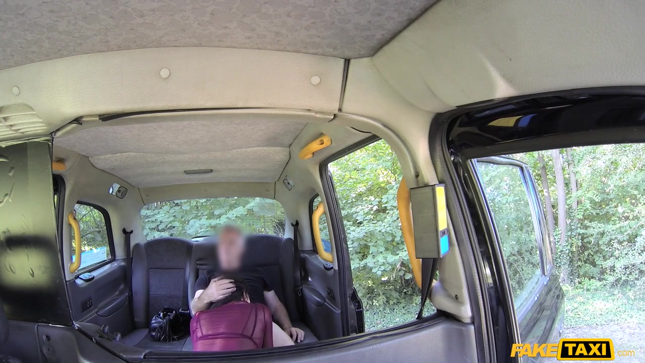 Taxi driver fucks slender brunette in the mouth in pov video