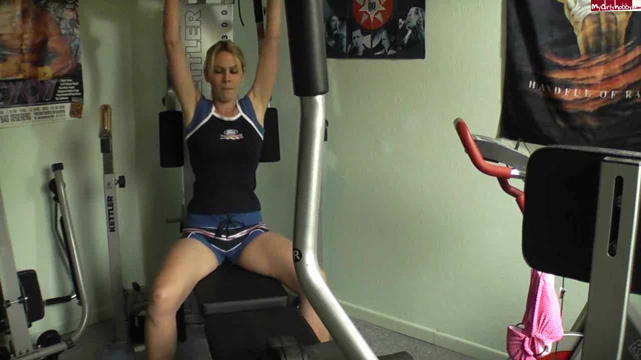 Soloing busty blonde Danielle Delaunay strokes her little crack