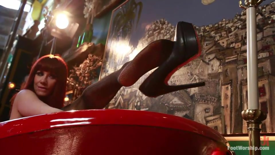 Sparkling redhead Maitresse Madeline Marlowe and a foot fetish slave