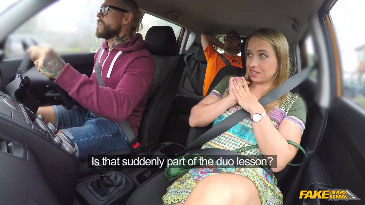 Busty lady nicely nailed on the backseat at Fake Driving School