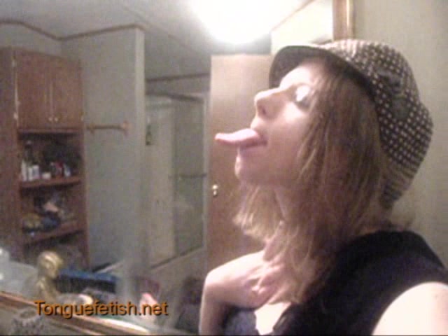 Stunning girl with long tongue demonstrates amazing tongue fetish