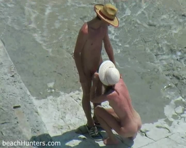 Sweet slim brunette with long legs is giving an outdoor blowjob