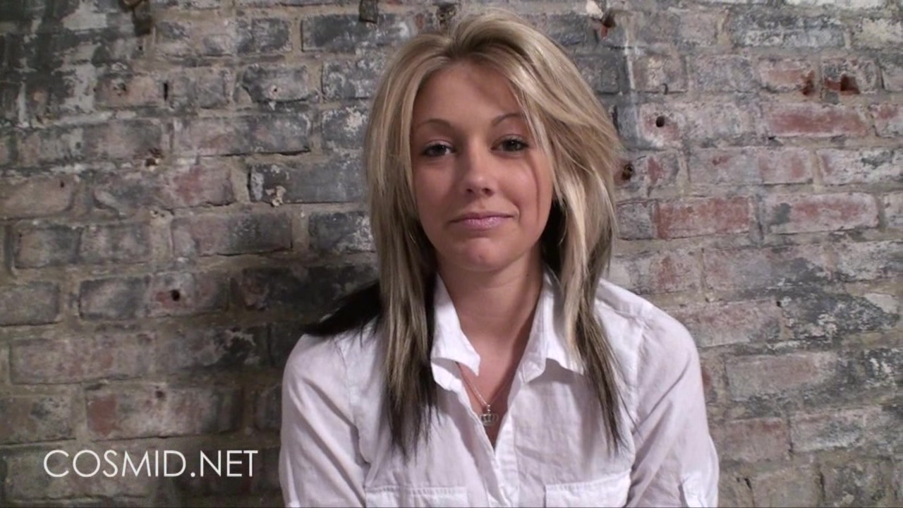 Sweetest and little bit weird Cosmid blonde in white shirt