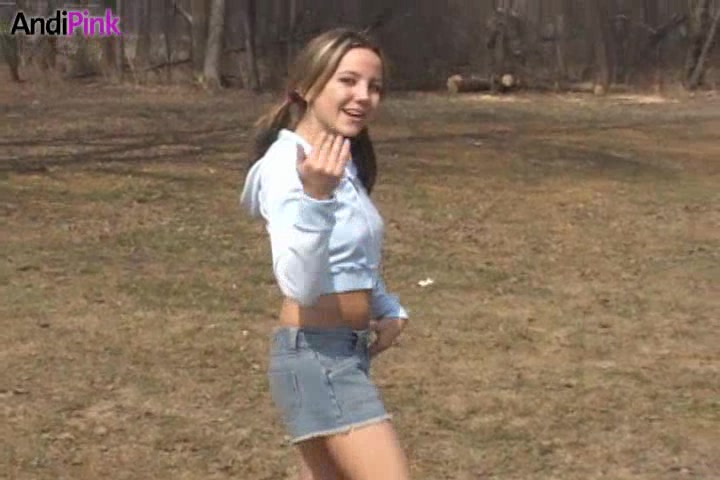 Adorable teen Andi Pink is trying to masturbate in the woods