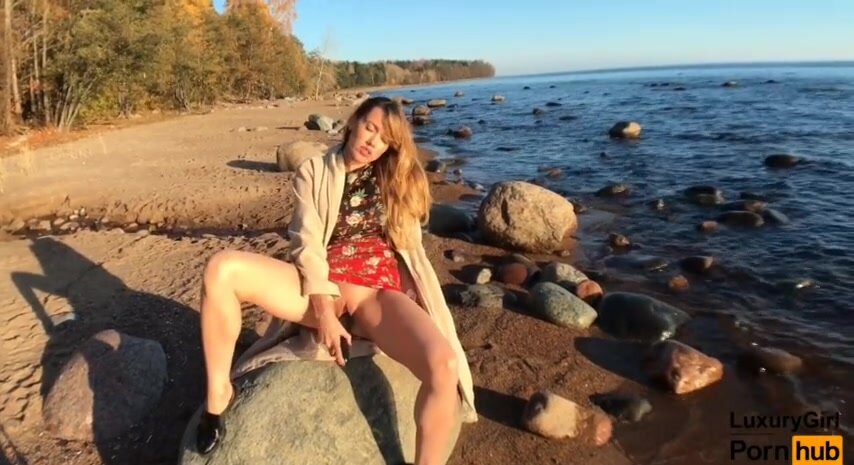 Teenager Outside Masturbation on the Beach keeps at-pushes on Black Sex-toy and LuxuryGirl