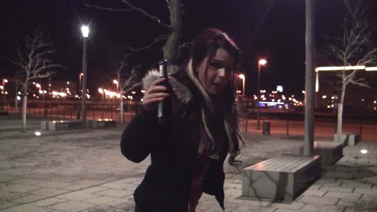 This stunning drunk brunette shows off her gorgeous body outdoors