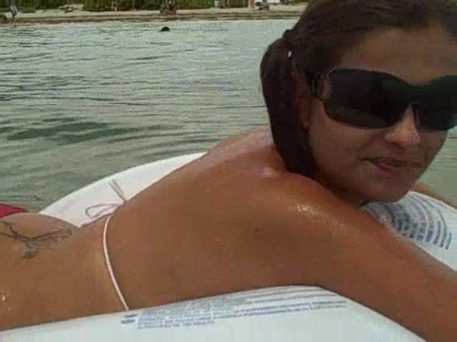 Toned gf demonstrates her massive naked tits in the sea