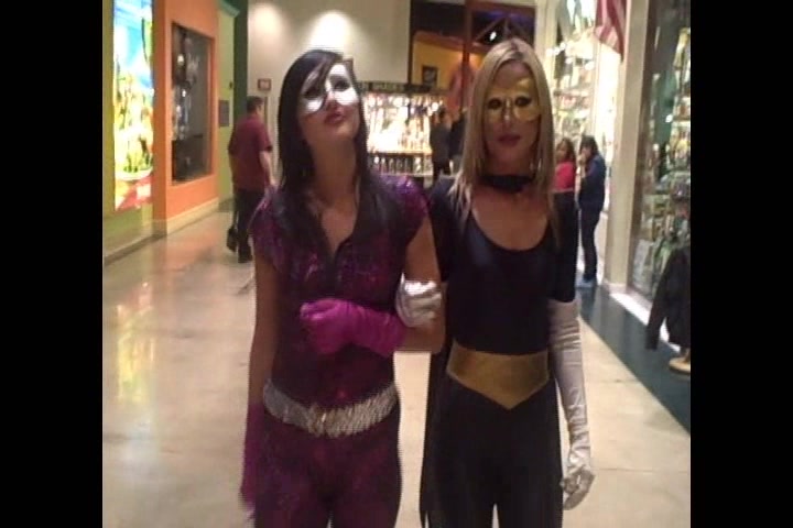 Two amateur spandex babes are walking in the mall