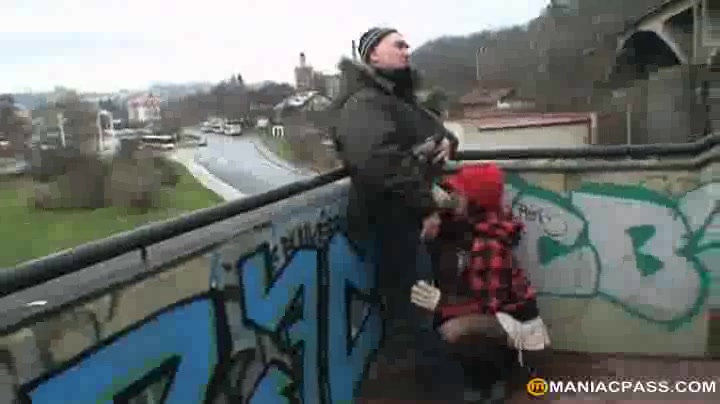 Fat old pervert gets a deep blowjob by a redhead young slut